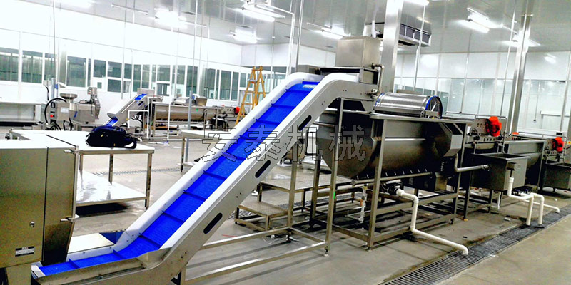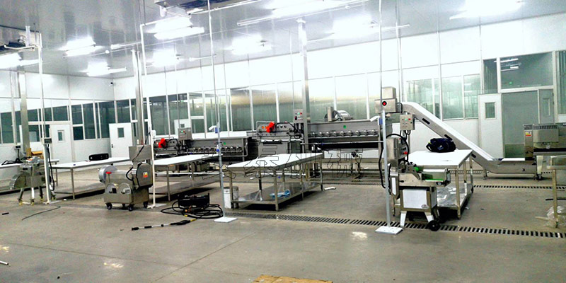 原料挑選---毛輥清洗去皮、氣泡清洗---去雜整理---切菜---漂燙殺青---冷卻---瀝水風干