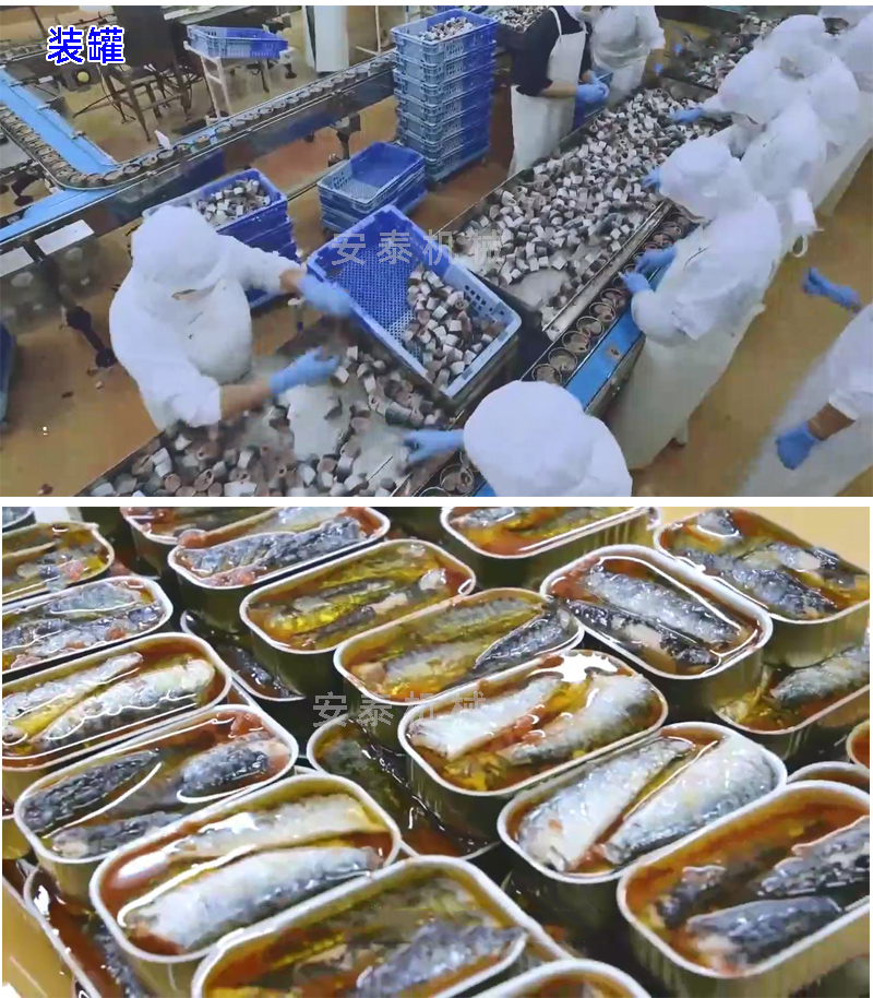 解凍——切斷——清洗——裝罐——蒸煮——加湯汁——真空封罐——高溫殺菌——裝卸籠——實(shí)罐清洗——吹干——貼標(biāo)——裝箱——碼垛